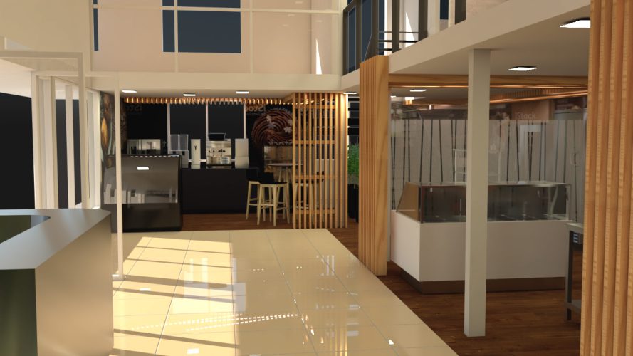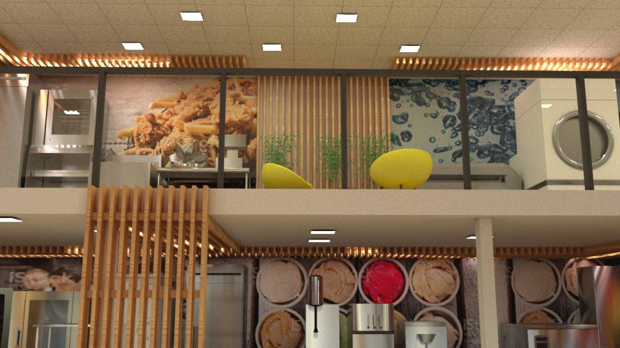 La elección de elementos repetitivos de madera retro iluminados “aleatoriamente” pasan a ser elementos compositivos tanto vertical como horizontalmente y adquieren una nueva forma de interpretarlos, junto con generar la iluminación requerida para cada caso. Al dialogar estos elementos con equipos y productos de alto brillo y tecnología, generan un contraste muy interesante. Sin embargo la madera en este caso no pasa a ser un elemento rústico, como se podría pensar en primera instancia, más bien pasa a ser un elemento que cobija y otorga calidez a los espacios, pero con una apariencia mas moderna (como un panel LED que tamiza la luz) y con unas terminaciones muy finas y elegantes tanto a la vista como por sus detalles constructivos.